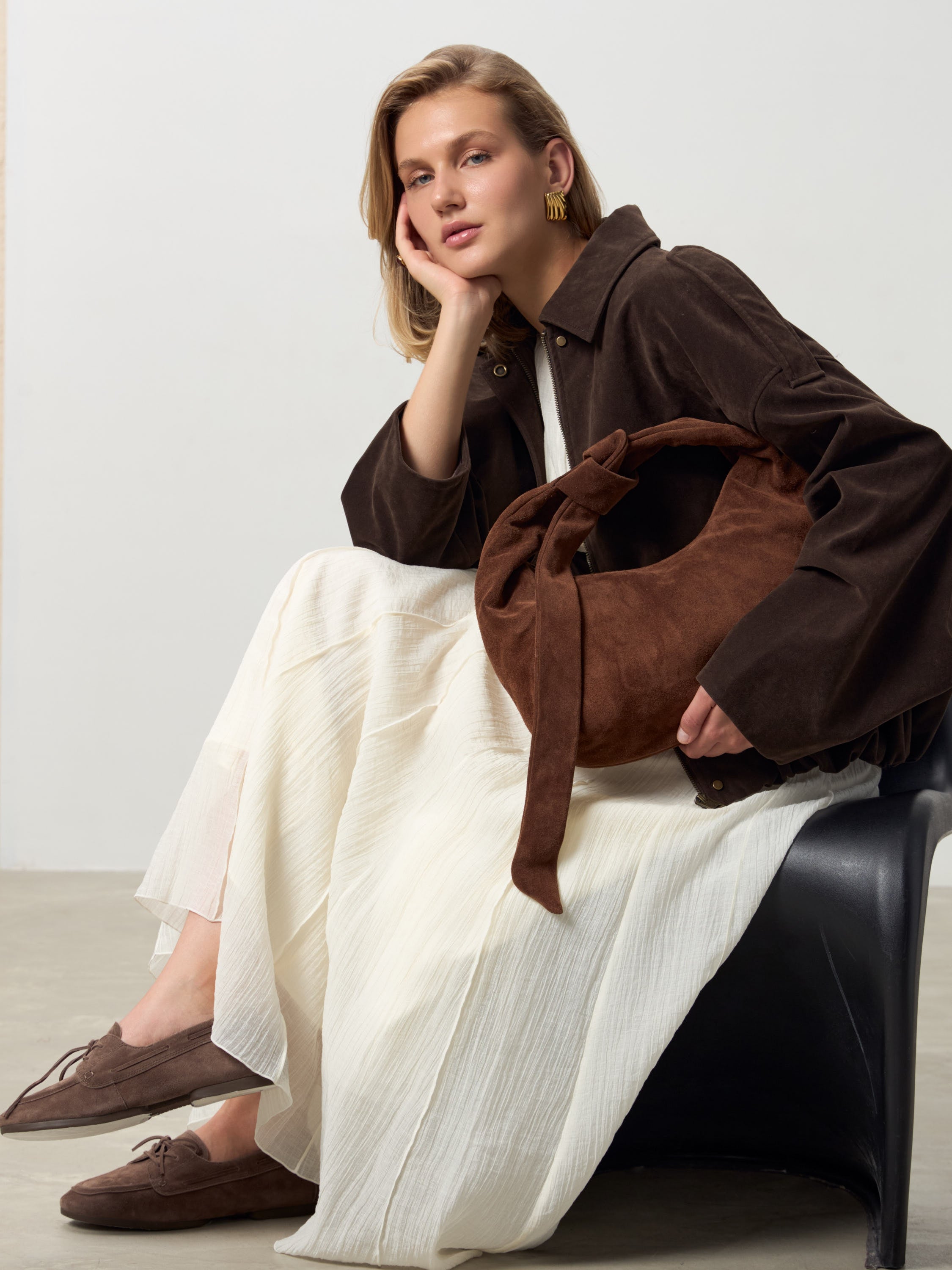 Sac en daim épaule avec noeud Medium